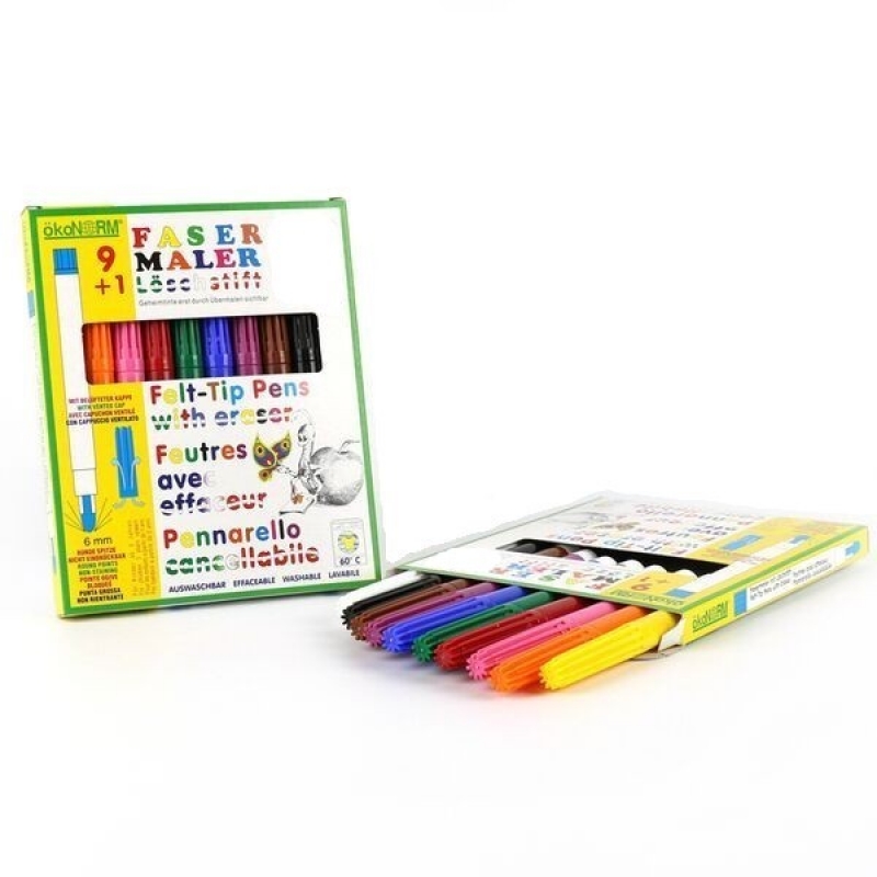 Fasermaler 9+1, inkl. Löschstift - 9 Farben